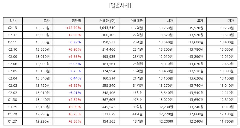 ▷ 금일 주가는 장 초반 급등 후 일부 차익 매물이 출회되었으나, 재차 매수세가 유입되며 강세권에서 마감하는 흐름을 보였다. 이동평균선 기준으로는 단기선 위로 주가가 안착하는 모습이 나타났으며, 거래량이 동반 확대되었다는 점에서 단기 추세 전환 가능성이 거론된다. 다만 최근 고점 부근에서는 매물 부담이 존재할 수 있어 추격 매수보다는 조정 구간에서의 분할 접근이 보다 안정적일 수 있다.