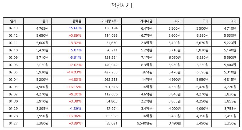 ▷ 금일 주가는 전일 대비 큰 폭으로 하락 출발한 이후 장중 반등을 시도했으나 매도 압력이 우세했다. 거래량은 최근 평균 대비 증가한 수준을 보였으며 장 후반까지 뚜렷한 회복 흐름은 제한적이었다. 단기 투자심리 위축이 반영된 변동성 장세로 평가된다.