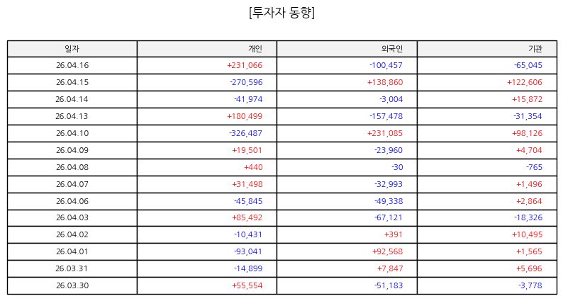 수급 측면에서는 개인 중심의 추격 매수 이후 차익실현 매물이 쏟아지며 하락 압력이 확대된 모습이다. 외국인과 기관의 참여가 제한적인 상황에서 거래대금 대비 실질적인 매수 기반이 약하다는 점도 변동성을 키운 요인으로 분석된다.