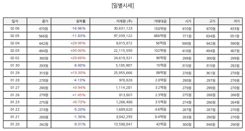 ▷ 최근 주가는 단기 이동 평균선을 하향 이탈한 이후 약세 흐름을 이어가고 있다. 하락 과정에서 거래량이 동반되며 매도 압력이 확인됐고 단기 지지선 부근에서의 공방이 진행 중이다. 뚜렷한 반등을 위해서는 거래량 감소와 함께 가격대 안정이 선행될 필요가 있다. 중기 추세 전환 여부는 이후 저점 형성과 반등 강도를 통해 판단하는 것이 바람직하다.