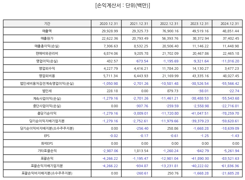 재무 측면에서는 매출 구조의 안정성 확보 여부와 비용 관리가 향후 주가 흐름의 핵심 변수로 꼽힌다. 기술 경쟁력은 일정 부분 확보하고 있으나 실적 가시성이 높지 않을 경우 시장 평가는 보수적으로 유지될 가능성이 크다. 중장기적으로는 신규 사업 성과와 수주 확대 여부가 투자 판단에 중요한 기준이 될 수 있다.