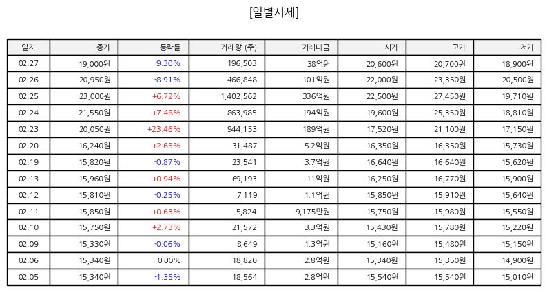 ▷ 금일 주가는 장 초반 소폭 상승 출발했으나 곧바로 매도세가 우위를 보이며 하락 전환했다. 오전 중 낙폭이 확대되었고, 오후 들어서도 반등 탄력이 제한되며 약세 흐름이 유지됐다. 거래량 증가와 함께 단기 지지선 이탈 여부를 시험하는 모습이 나타났으며, 기술적 지표상 단기 이동평균선이 하향 기울기를 보이고 있다. 단기적으로는 최근 저점 구간의 지지력 확인이 중요하며, 반등 시에는 이전 매물대 돌파 여부가 관건으로 보인다.