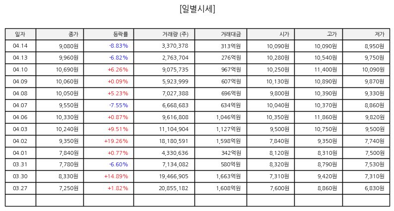 ▷ 금융정보 사이트 종합 데이터 재구성, 증권사 시세 자료 기반 정리, 시장 데이터 분석 종합