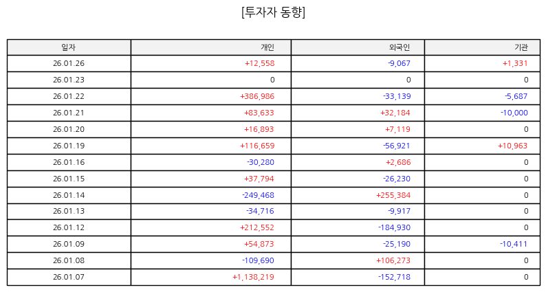 ▷ 최근 주가 흐름을 보면 단기 상승 이후 조정 국면이 이어지고 있다. 이동 평균선 하단에서 거래가 형성되며 약세 흐름이 유지되고 있다. 거래량은 하락 구간에서 증가하는 모습을 보여 단기 매도 압력이 강했음을 시사한다. 기술적으로는 지지선 확인 과정이 필요하며 변동성 확대 국면에서는 분할 관점의 대응이 언급되고 있다.