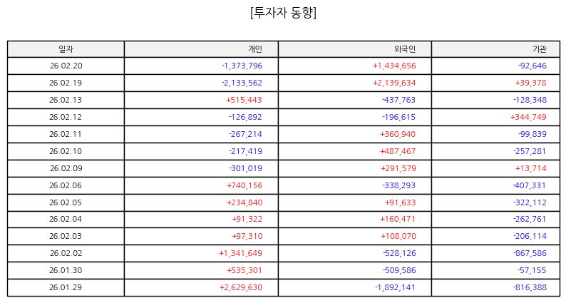▷ 오늘 주가는 외국인 순매수 유입과 함께 거래량이 증가하며 단기 이동평균선 위로 안착을 시도하는 흐름이었다. 장중 조정 구간에서도 저가 매수세가 유입되며 낙폭을 제한했고, 종가 기준으로는 단기 반등 신호가 일부 확인되는 모습이다. 다만 중기 추세 전환으로 보기 위해서는 추가적인 거래대금 확대와 기관 수급 동반 여부가 필요해 보인다.