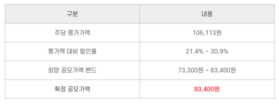 - 공모가 83,400원(주당 증거금 50% 41,700원)