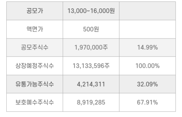 - 공모가: 13,000~16,000원