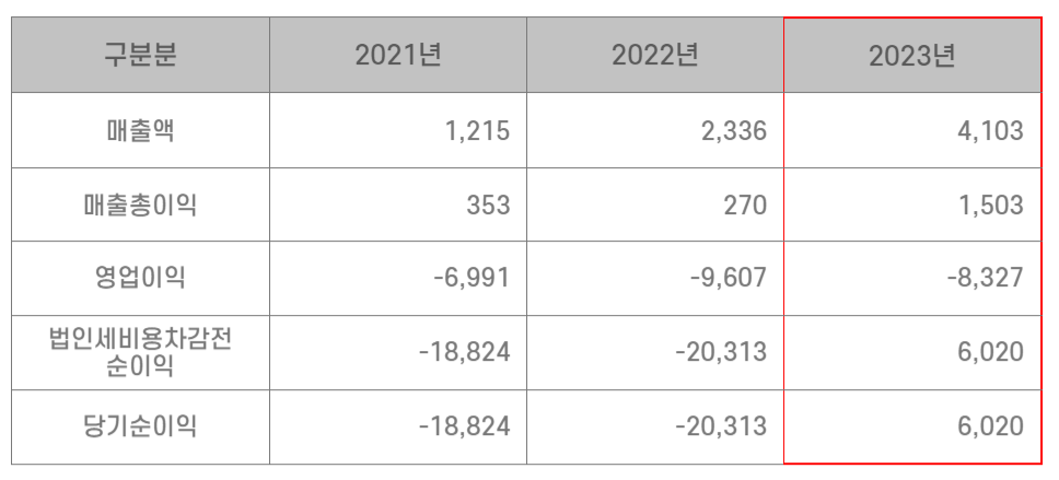 에스오에스랩은 2022년부터 제품 양산이 시작되어 높은 매출 성장세에도 불구하고 현재까지 지속적인 영업손실을 기록하고 있습니다. 이는 연구개발비 증가로 인한 것으로 판단됩니다.