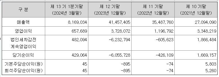2023년 기준 당기 순이익은 60억 원 적자이나 수요예측결과 공모가 18,000원으로 결정되며 밴드 상단(14,200원)을 뚫는 모습을 보여주었습니다.