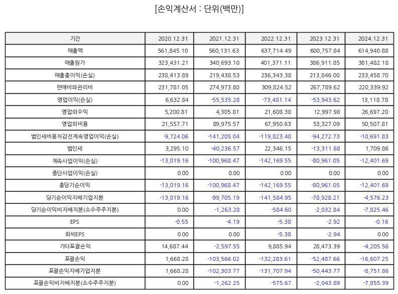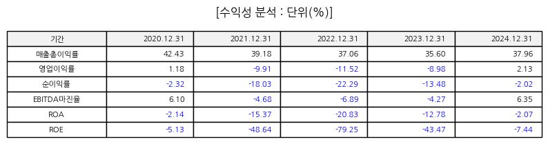 최근 사업 성과를 보면, 매출은 일부 감소세를 보였으나 비용 효율화 및 영업 레버리지 개선으로 영업이익이 전년 대비 크게 증가했고 순이익이 흑자 전환하는 등 재무구조 개선의 기조를 보였다. 이러한 개선은 일회성 비용 축소와 주력 제품 판매 증가에 기인한 것으로 분석된다.