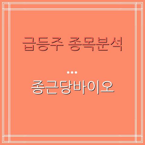 급등주 종목분석 : 종근당바이오 (063160) : 상승 모멘텀 점검과 중장기 가치 분석