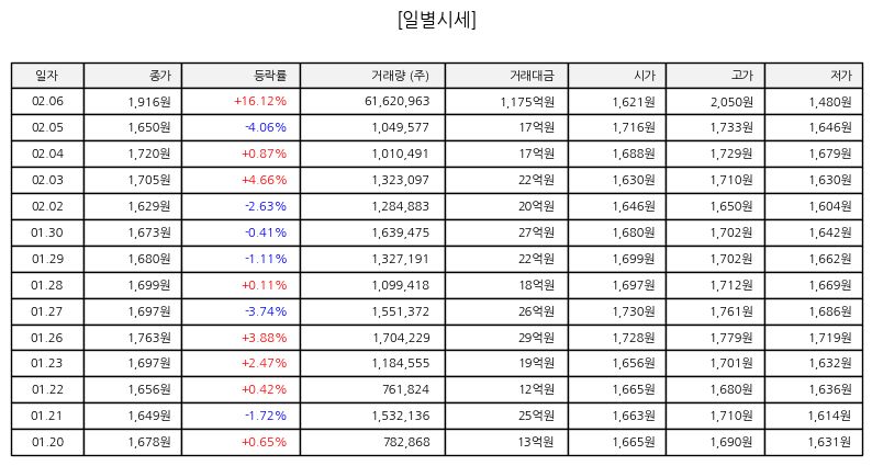 ▷ 오늘 주가는 시가 이후 빠른 상승세를 보이며 거래량이 동반 증가했다. 장중 조정 구간에서도 저점이 점차 높아지는 흐름을 나타냈고 종가 기준으로도 강세를 유지했다. 단기 기술적으로는 이동 평균선 위에서 거래가 이루어지며 단기 추세 전환 가능성이 거론되고 있다. 다만 단기간 상승 폭이 커진 만큼 향후에는 거래량 변화와 조정 여부를 함께 확인할 필요가 있다.