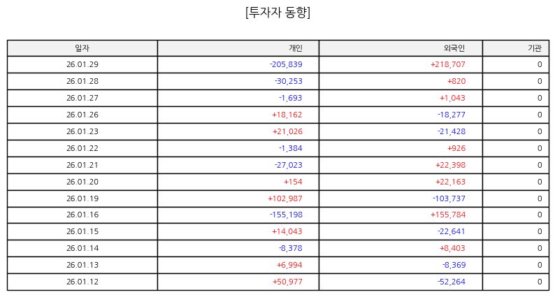 수급 흐름을 보면 개인 투자자의 관심이 크게 증가한 가운데 일부 기관성 자금의 유입도 관찰된다. 이는 단순한 테마성 접근을 넘어 기업 가치에 대한 탐색이 병행되고 있음을 시사한다. 거래량이 동반된 상승은 단기 이벤트로 끝나기보다는 일정 기간 관심이 이어질 여지를 남긴다.