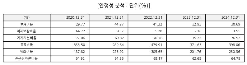 재무 구조를 보면 부채 부담은 비교적 안정적인 수준을 유지하고 있으며 유동성 측면에서도 큰 위험 신호는 보이지 않는다. 이는 변동성이 큰 시장 환경 속에서 방어적인 요소로 작용할 수 있다. 그러나 성장성에 대한 기대가 제한될 경우 주가 반등 역시 제한적일 수 있다는 점은 유의할 필요가 있다. 현재 주가는 이러한 우려와 기대가 동시에 반영된 구간으로 볼 수 있다.