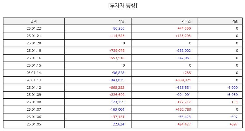 ▷ 최근 하락 흐름은 단기 과열 이후 조정 성격이 강하며 오늘은 매도 물량 집중으로 낙폭이 확대되었다. 거래량 증가와 함께 저점 인식 구간 탐색이 진행 중이며 단기 변동성은 높은 상태다. 중기 방향성은 실적과 업황 개선 신호 확인 이후 결정될 가능성이 크다.