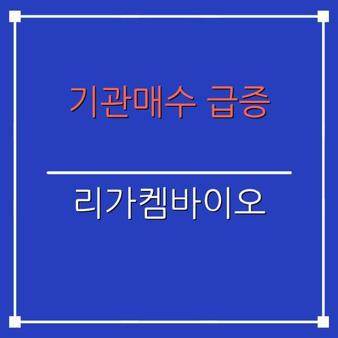기관매수 급증 : 리가켐바이오 (141080) : 기관 순매수 집중 수급과 중장기 가치 점검
