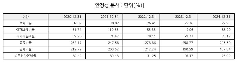 ▷ 기술적 관점에서 보면 최근 주가는 박스권 흐름을 유지하며 단기 이동평균선 부근에서 등락을 반복하고 있다. 강한 추세보다는 매물 소화 과정이 이어지는 모습이며 거래량 역시 과열되지 않은 수준이다. 기관 매수 구간에서는 하락 속도가 둔화되는 특징이 나타나고 있으며 이는 단기 지지선 역할을 할 가능성이 있다. 중장기 이동평균선과의 괴리를 점검하며 추세 전환 여부를 확인할 필요가 있다.