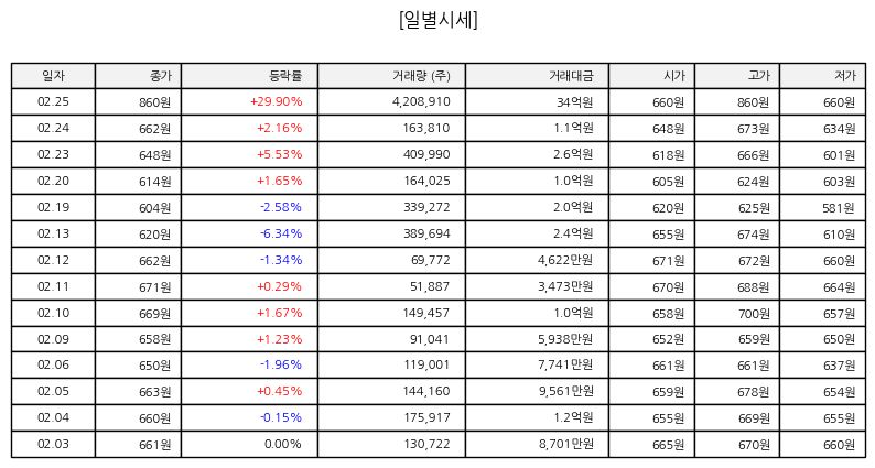 ▷ 금일 주가는 장 초반 갭 상승으로 출발한 뒤 매수세가 집중되며 빠르게 상한가에 도달했다. 거래량은 평소 대비 크게 증가했고, 매도 물량이 제한적인 상태에서 매수 잔량이 유지되며 종가까지 가격제한폭을 지켰다. 단기 급등에 따른 차익 실현 가능성은 존재하지만, 거래량을 동반한 상한가라는 점에서 시장의 관심이 집중된 종목으로 평가된다.