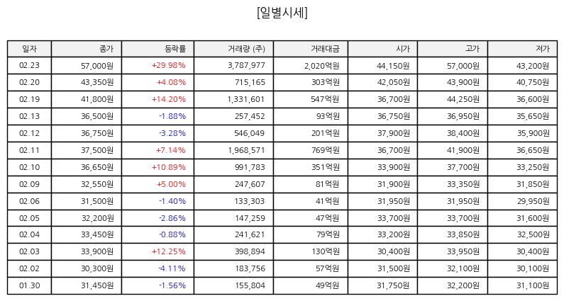 ▷ 금일 주가는 상승 출발 후 매수세가 집중되며 장 초반 급등했다. 거래량이 빠르게 증가했고 오전 중 가격제한폭에 도달한 뒤 종일 상한가를 유지하는 강한 흐름을 보였다. 단기 이동평균선을 단숨에 돌파하며 추세 전환 기대감이 형성됐으나 단기 과열 구간 진입 여부는 향후 거래량 지속 여부가 관건이다.