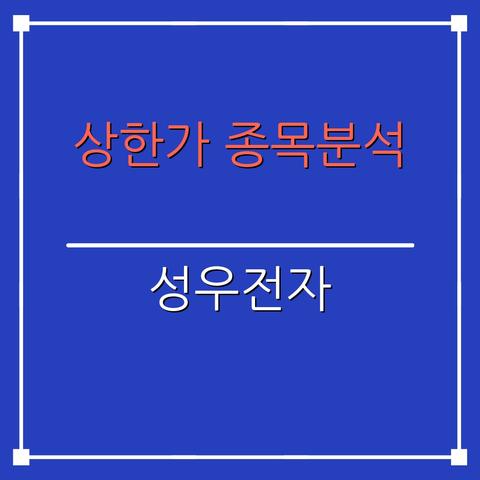 상한가 종목분석 : 성우전자 (081580) : 상한가 배경과 중소형 전자부품주 재평가 흐름