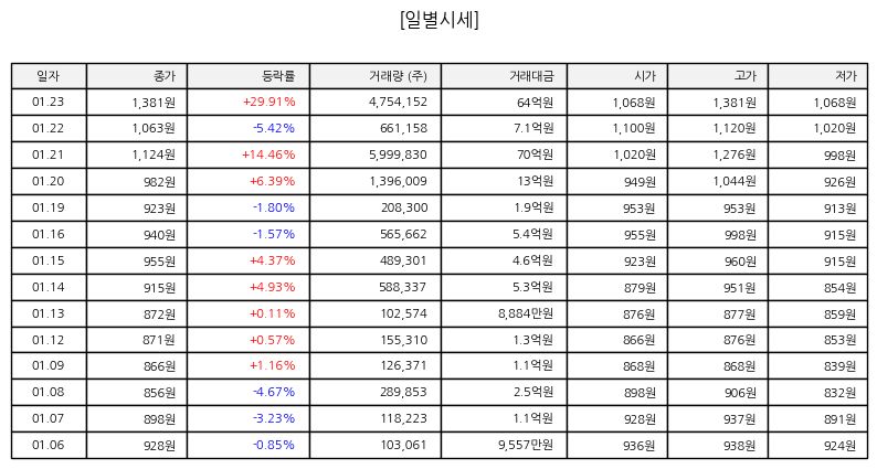 ▷ 장 초반 강한 매수세 유입 이후 거래량이 급증하며 주가가 빠르게 상승했다. 장중 조정 시도에도 불구하고 매수 우위가 유지되었고 오후 들어 상승 폭이 확대되며 상한가에 안착했다. 종가 기준으로도 매수 잔량이 유지되며 투자 심리가 강하게 반영된 하루였다.