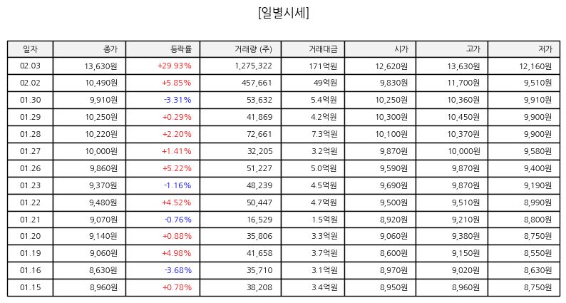 ▷ 당일 주가는 시초가 이후 빠른 상승세를 보이며 초반부터 강한 매수 흐름이 형성되었다. 오전 중 거래량이 급증하며 가격 제한폭에 도달했고 이후에도 매수 잔량이 유지되며 상한가 상태가 이어졌다. 단기 차익 실현 물량에도 불구하고 수급 우위가 유지된 것이 특징이다.